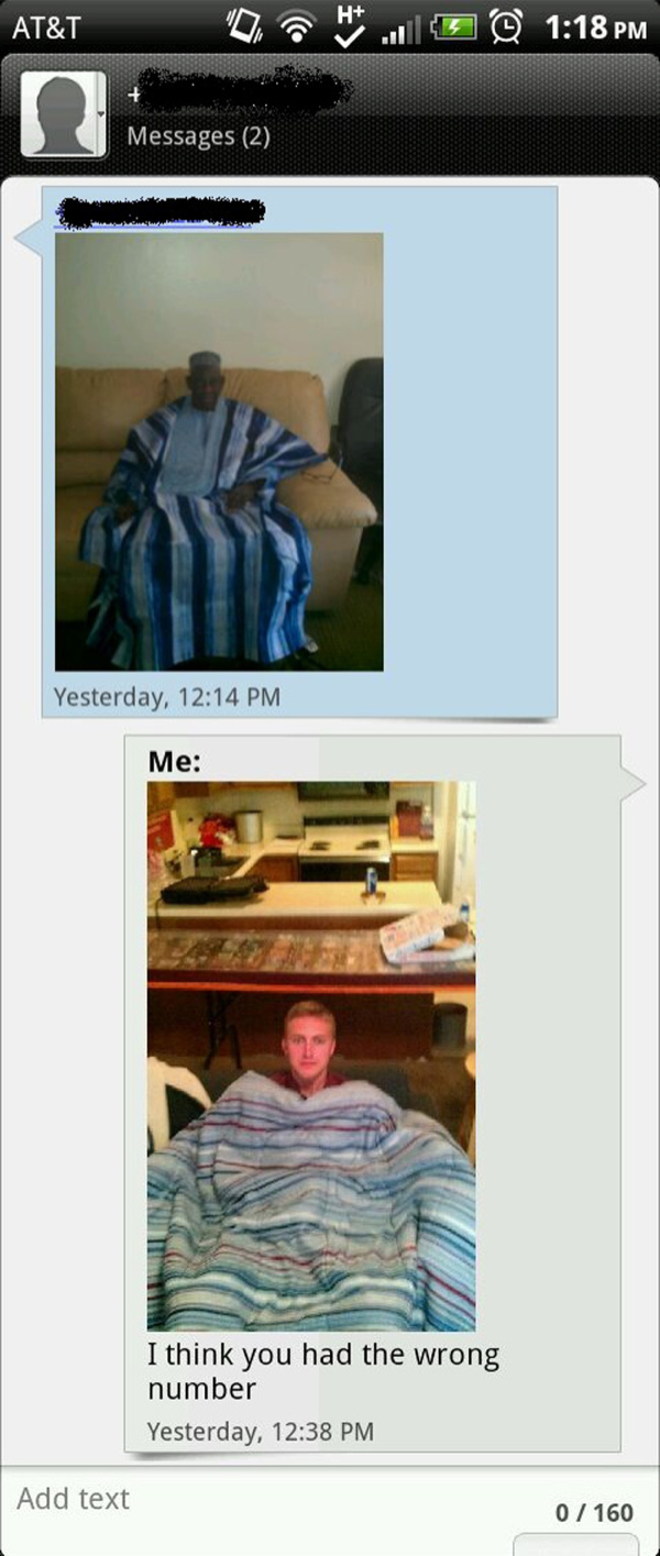 Foreløbig har vi en trofast eldre stasjonsvogn i feil farge men i riktig merke. Det får duge for nå. Den trenger nok litt kjærlighet for å komme over neste alderstrinn hos biltilsynet, men den sorgen er ikke noe man bør ta på forskudd. Når jeg sitter å skriver blir jeg ofte omdirigert av min egen hjerne til å gjøre andre ting. Se en video, høre en sang, lese litt nyheter etc. Noen ganger kommer jeg over ting som bare får meg til å le hver eneste gang. Det trenger ikke være noe fantastisk morsomt, heller enkelt og motsatt. Humor er en merkelig ting. Ta dette bildet som eksempel. Her er en stakkar som har sendt bildemelding til feil person. Så har mottager vært kjapp i responsen og viser hva han la merke til. Den er uslåelig. Så enkelt.